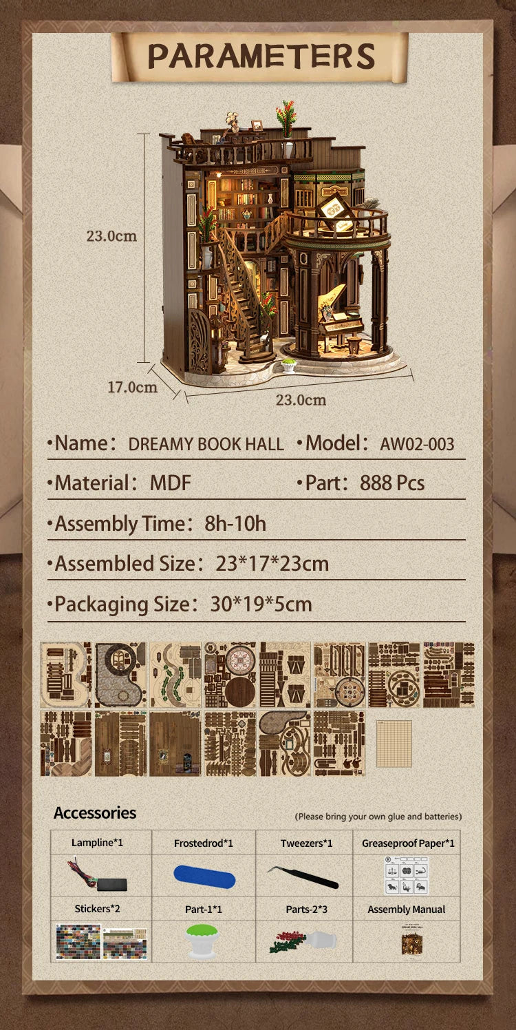 DIY Wooden Dreamy Book Hall Cottage Figurines Miniatures