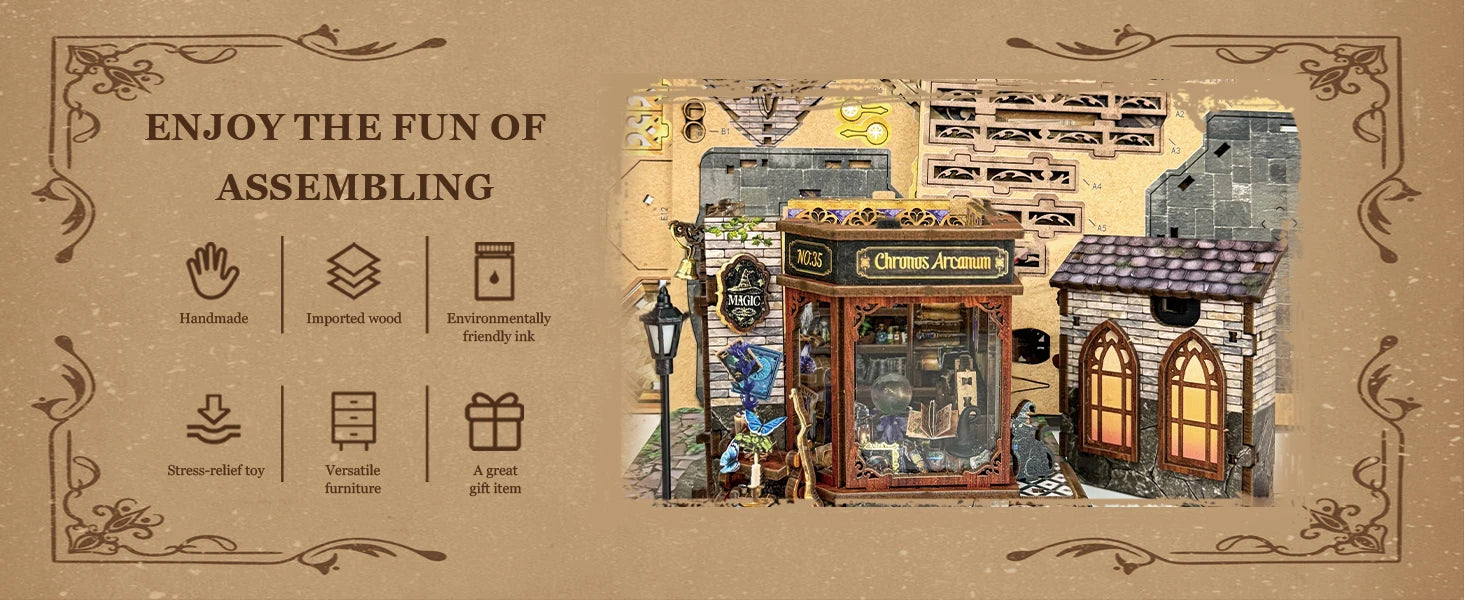 Discover the NEW DIY Wooden Time Magic Club, a meticulously crafted miniature set designed for enthusiasts and crafters alike. This kit includes detailed figurines and miniatures, complete with LED lighting and integrated music features to create an enchanting ambiance.