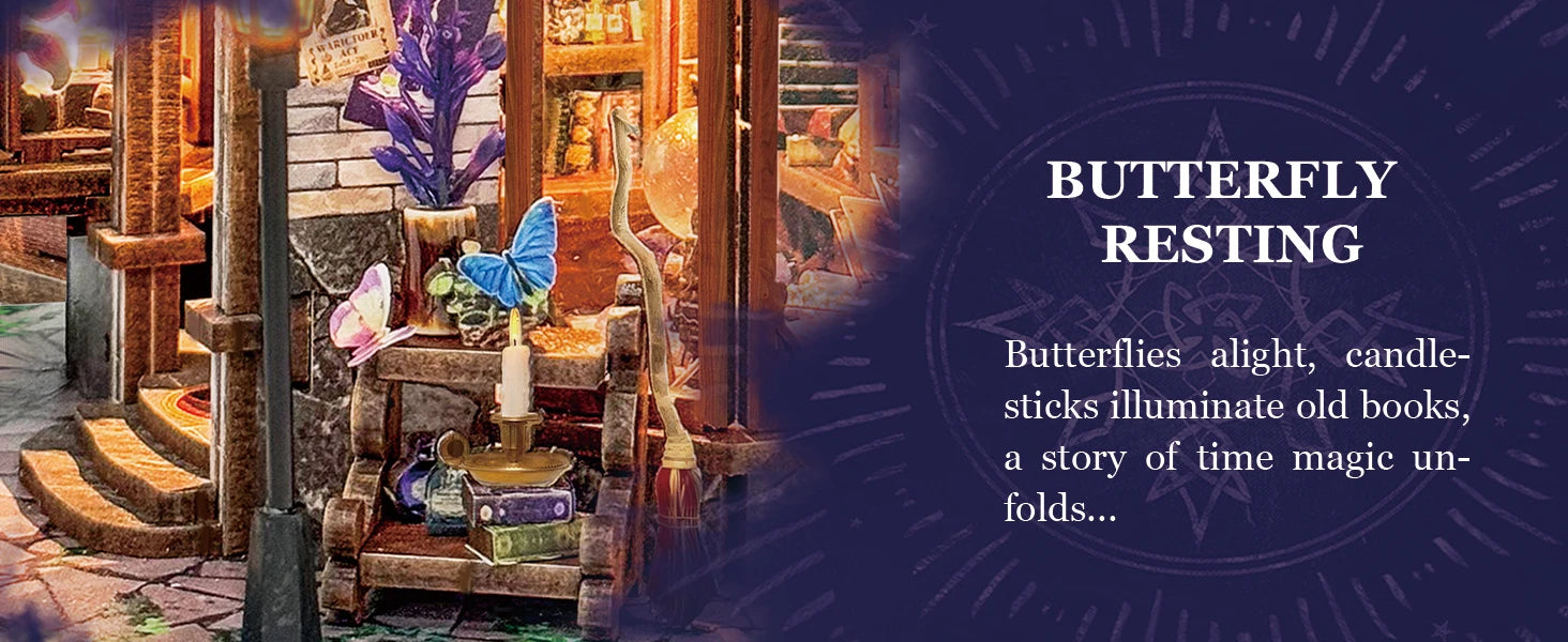 NOTE: This kit arrives as a collection of pieces, including all the furniture shown, ready for you to assemble at your own pace. Please note that glue, batteries, and tools are not included, so be sure to have those available to help you complete your beautiful miniature magic club.
